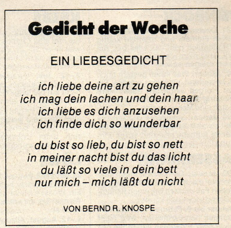 Gedicht der Woche im Stern, Heft-Nr. 30, 18.07.1985